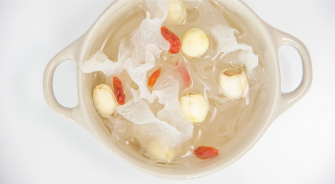 首先要準備的配料是20克銀耳,100克紅棗以及250克冰糖。銀耳先用溫水泡開,之后摘去黑根,用開水過濾一下。在煮之前先裝1500克清水,待到水燒沸之后,加入冰糖以及銀耳和紅棗,再煮兩分鐘之后即可。