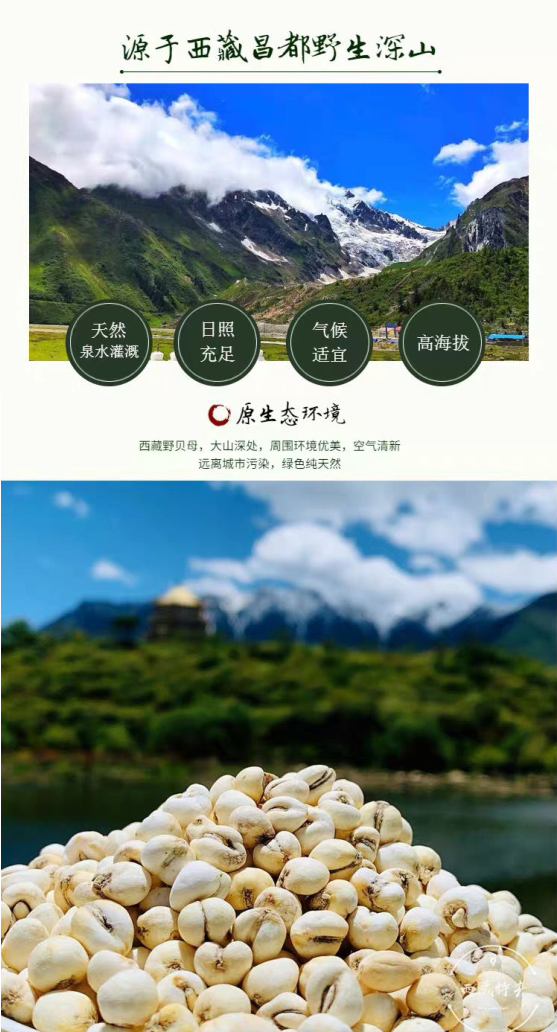 藏貝母是西藏這片神奇的土地所孕育的山珍中的一種。藏貝母含豐富的生物鹼,貝母素、甲、乙、丙、丁、川貝